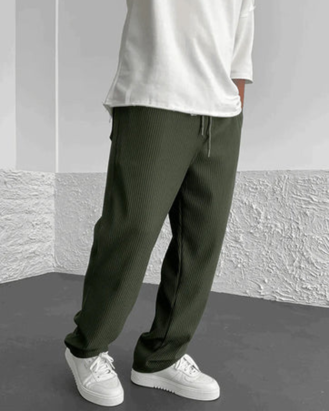 Com vários bolsos espaçosos, estas calças oferecem praticidade sem sacrificar o estilo. Perfeitas para transportar os seus objectos essenciais de forma segura e confortável.