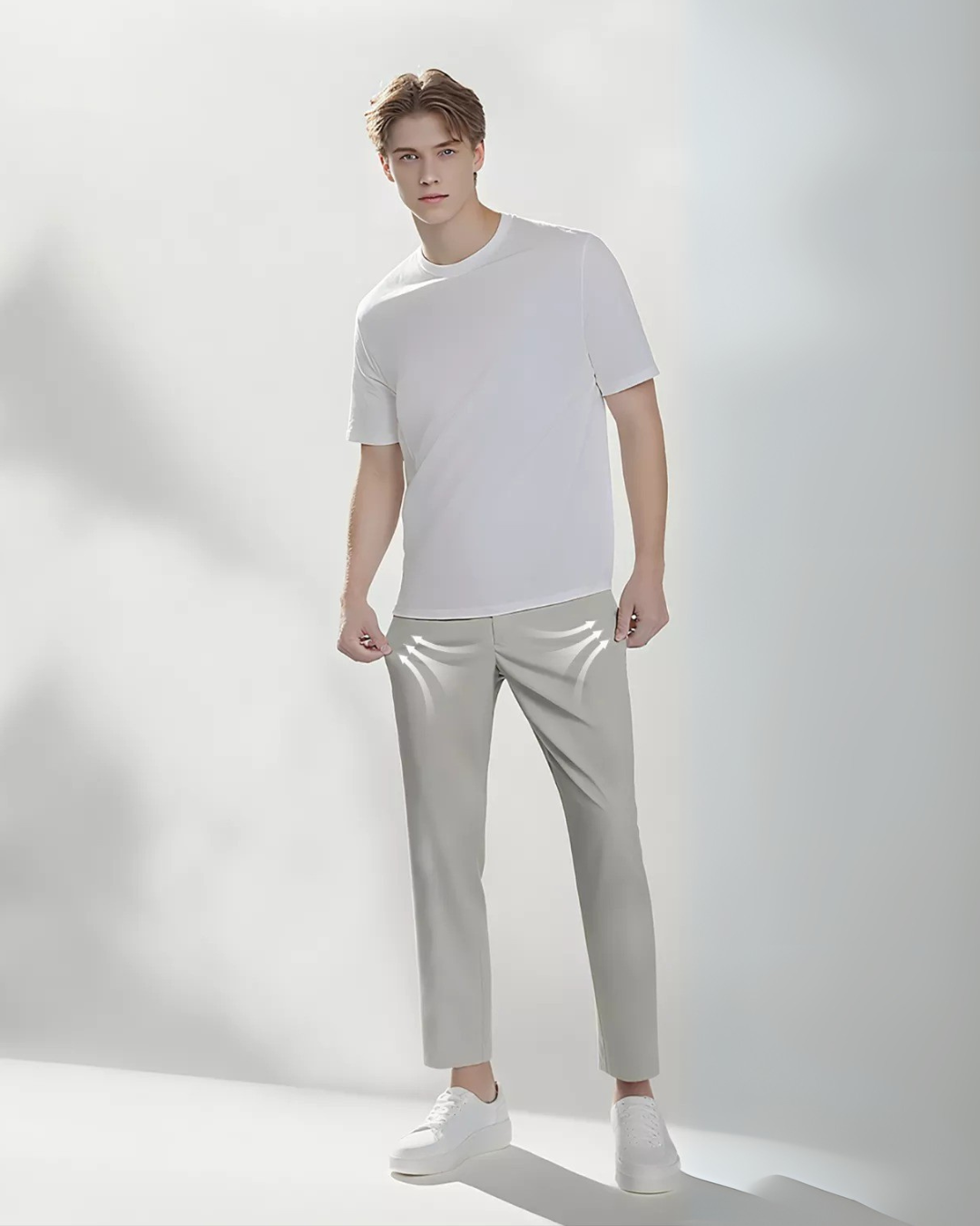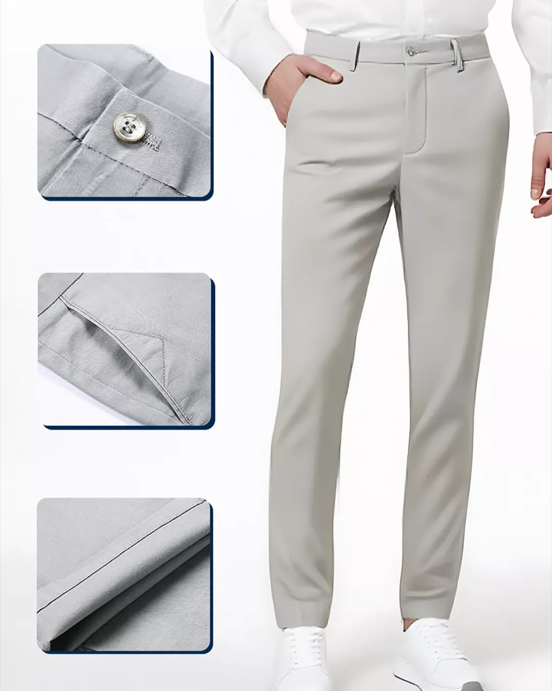 A qualidade de umas boas calças nota-se nos detalhes. As costuras deste modelo são meticulosamente elaboradas com acabamentos refinados, que não só fortalecem a peça, como também contribuem para a sua aparência polida e profissional. Estes acabamentos garantem que as calças tenham um ar sofisticado em qualquer ocasião.
